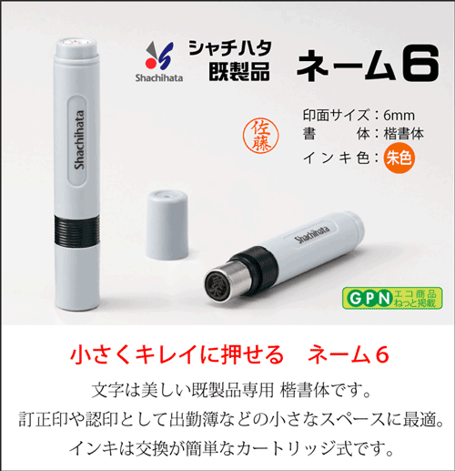 シャチハタ ネーム印 ネーム6(既製品)認印 印鑑 浸透印 はんこ ハンコ シヤチハタ 携帯タイプ[x]